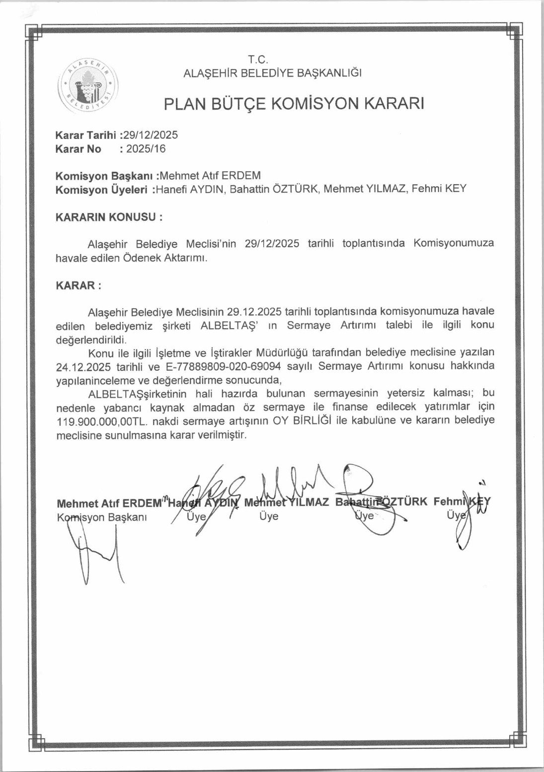 2025 YILI ARALIK AYI KOMİSYON KARARLARI