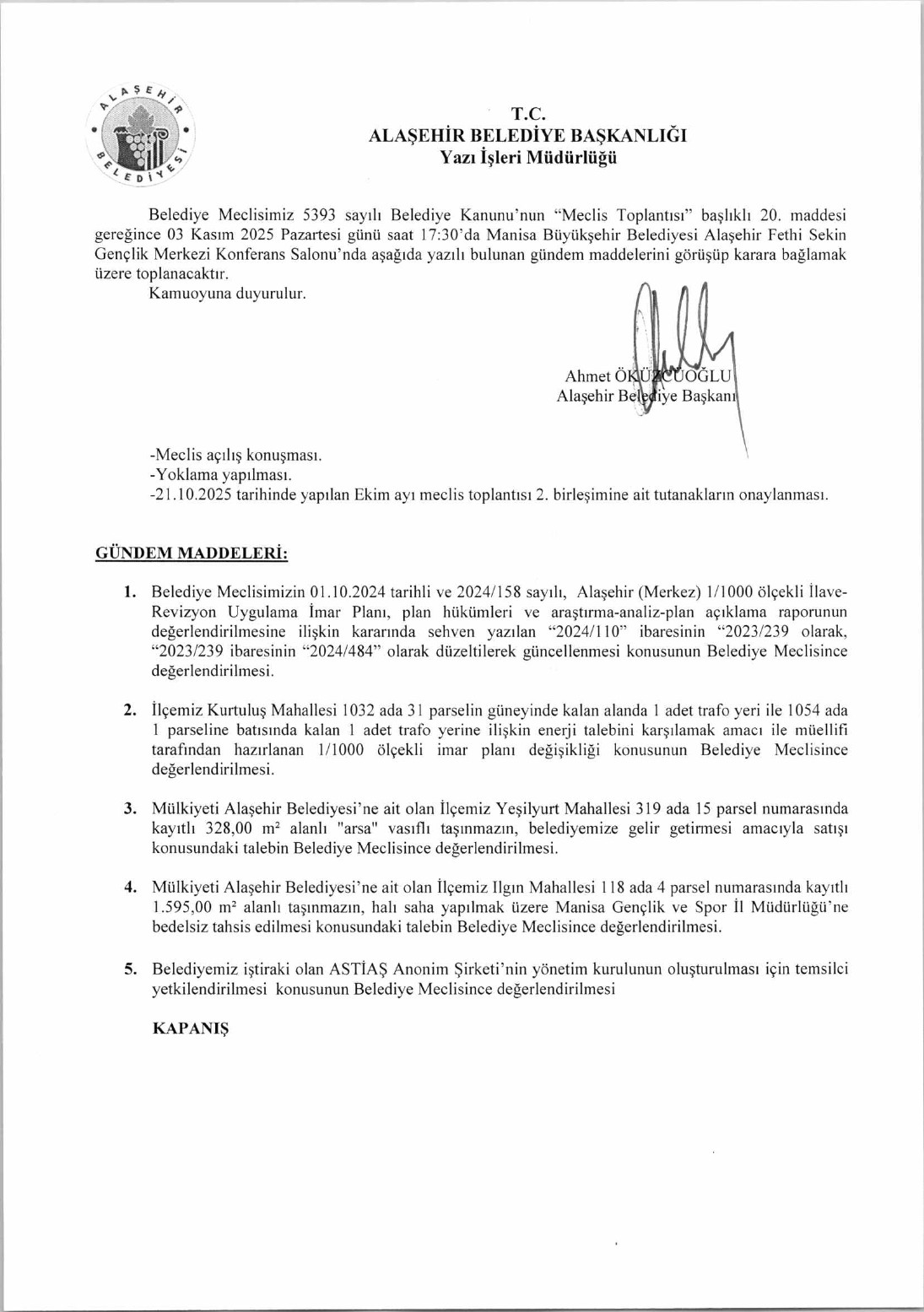 2025 YILI EKİM AYI MECLİS GÜNDEM LİSTESİ