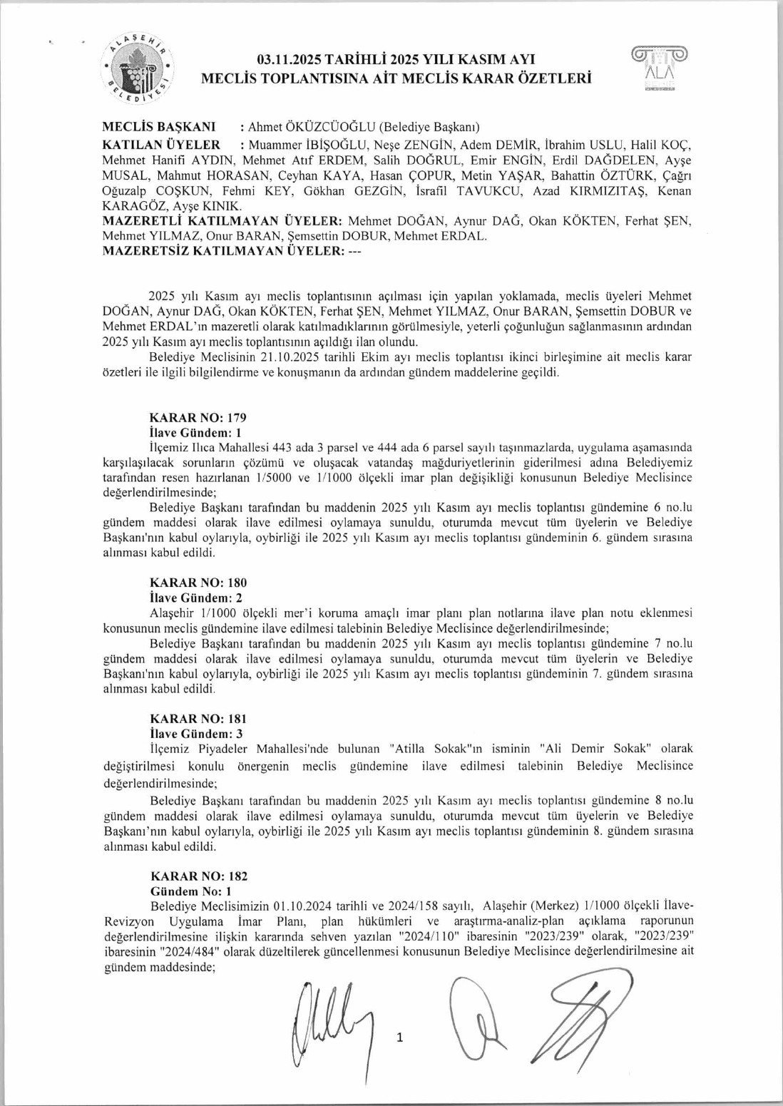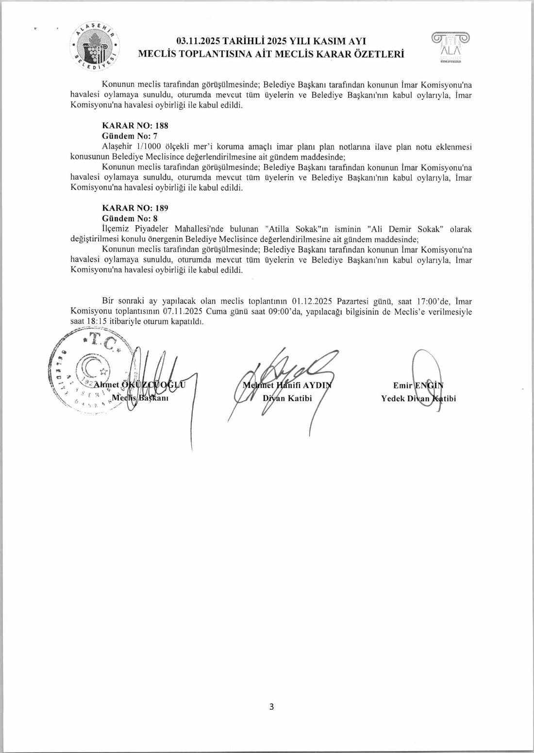 2025 YILI KASIM AYI MECLİS KARAR ÖZETİ