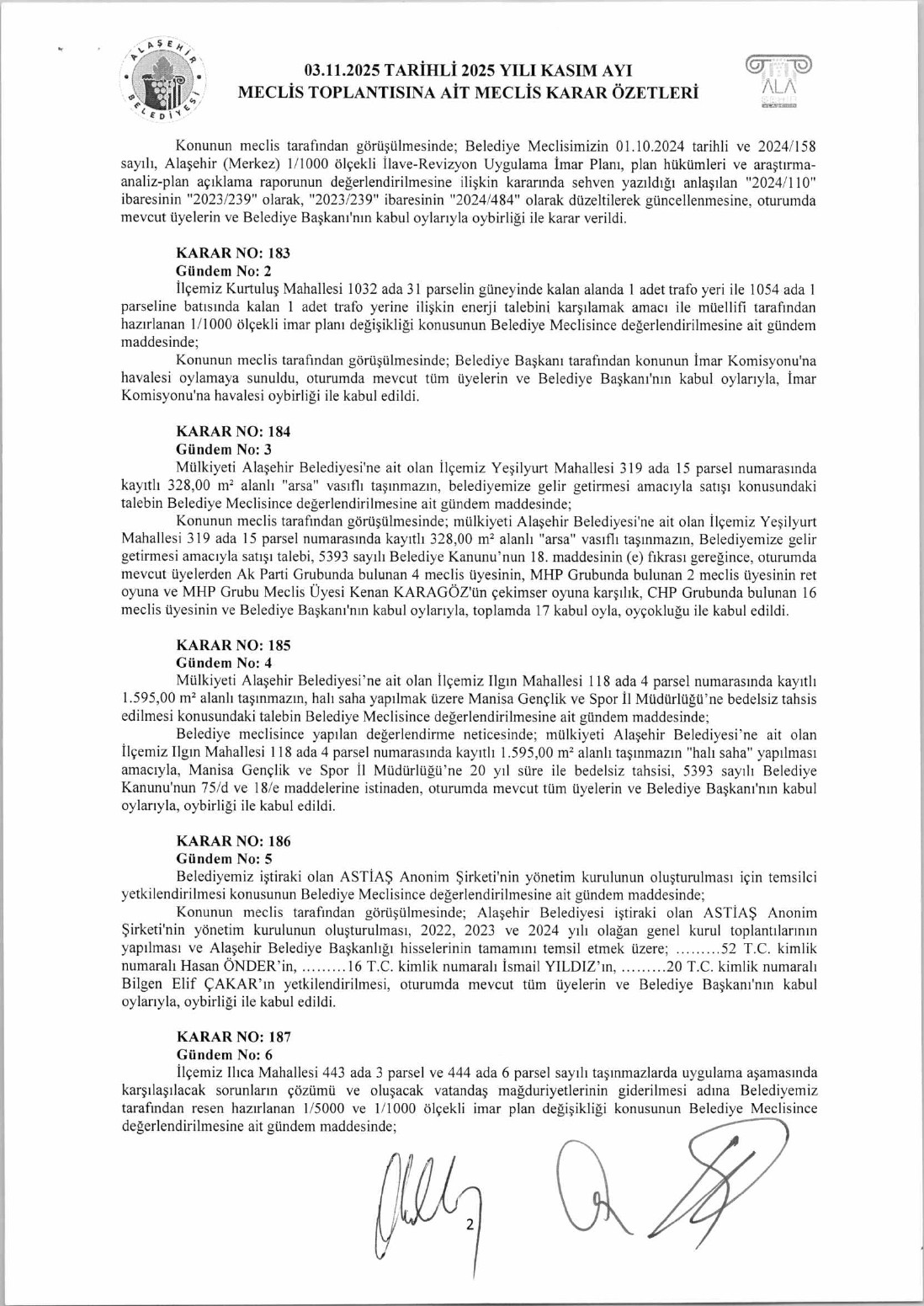 2025 YILI EKİM AYI 2. MECLİS KARAR ÖZETİ