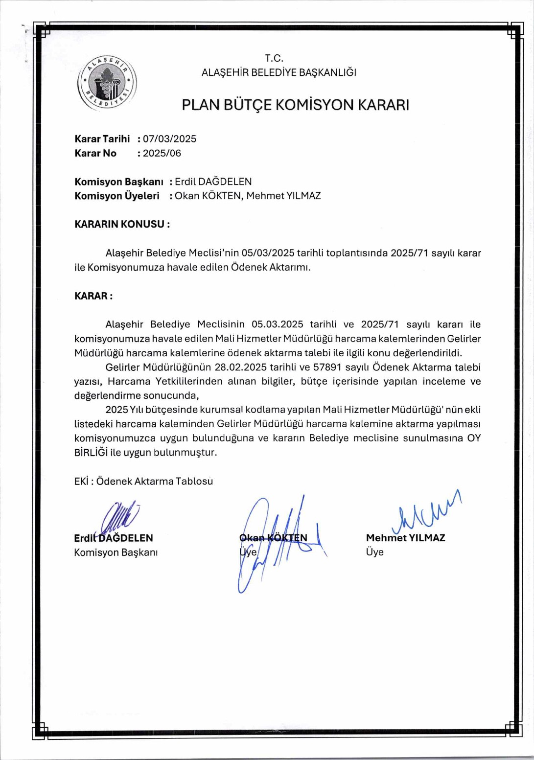 2025 YILI NİSAN AYI MECLİS TOPLANTISI KOMİSYON KARARLARI