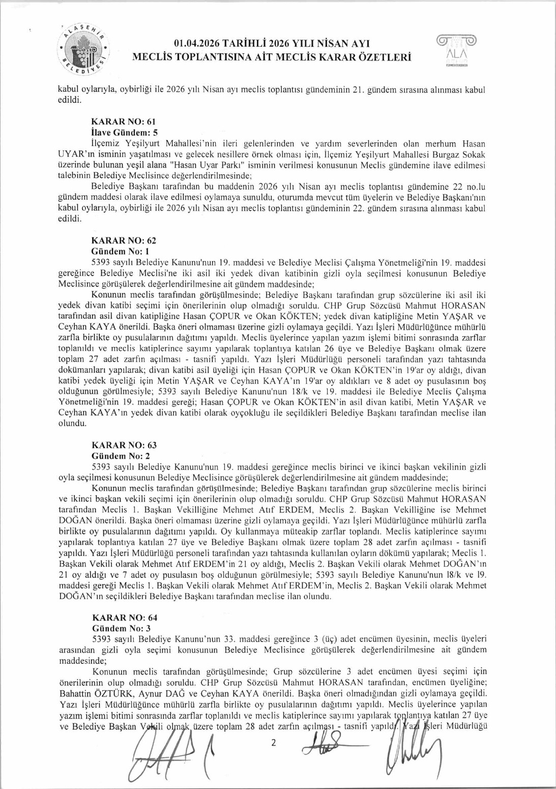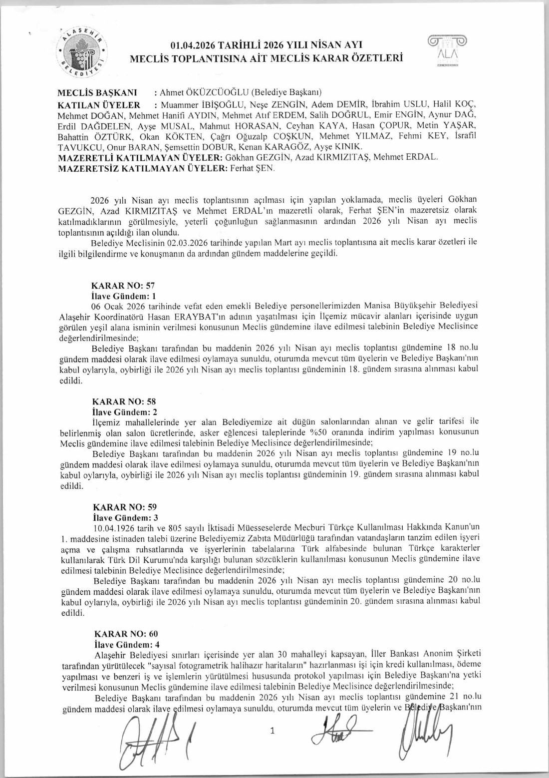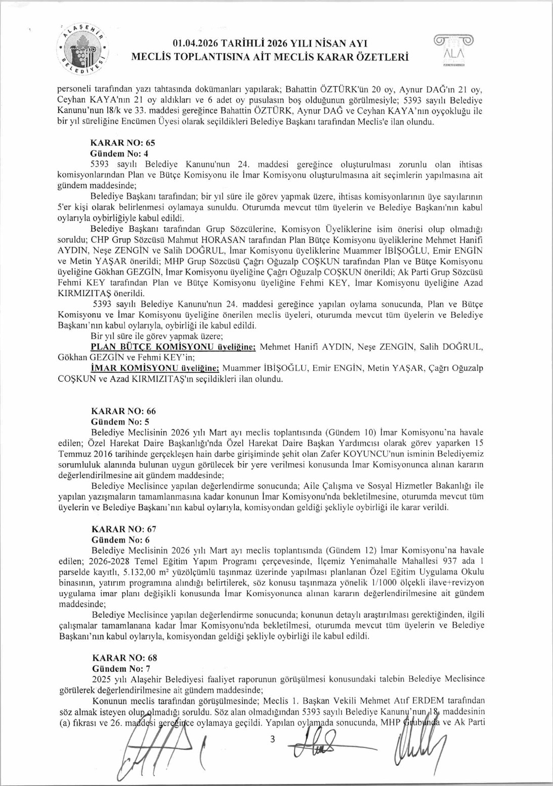 2026 YILI NİSAN AYI MECLİS KARAR ÖZETİ
