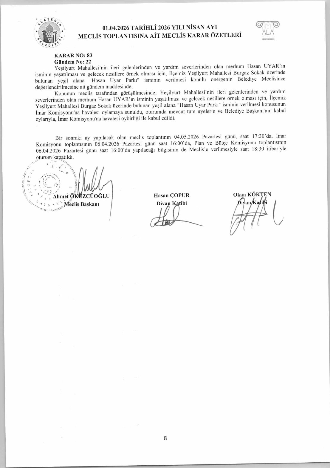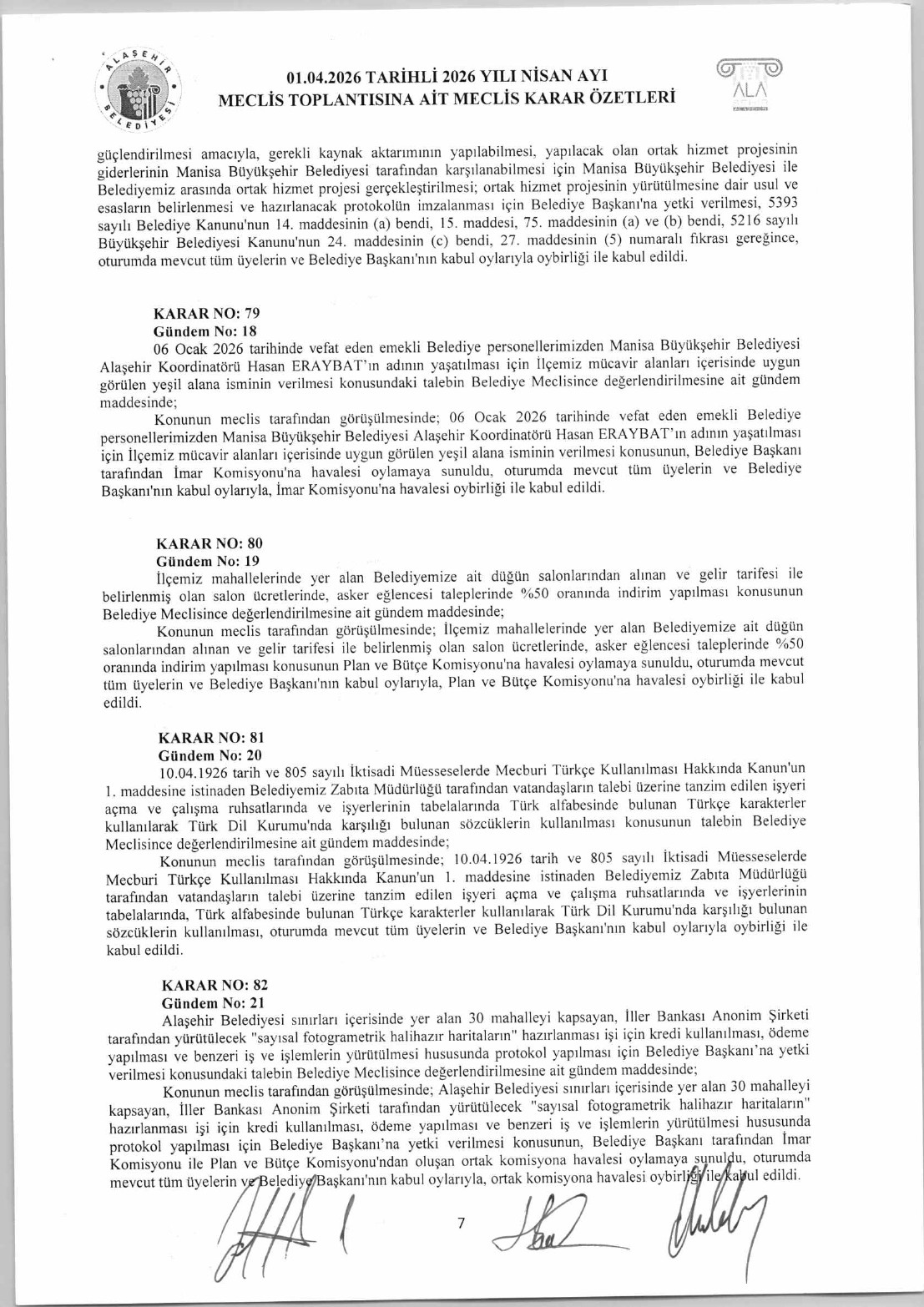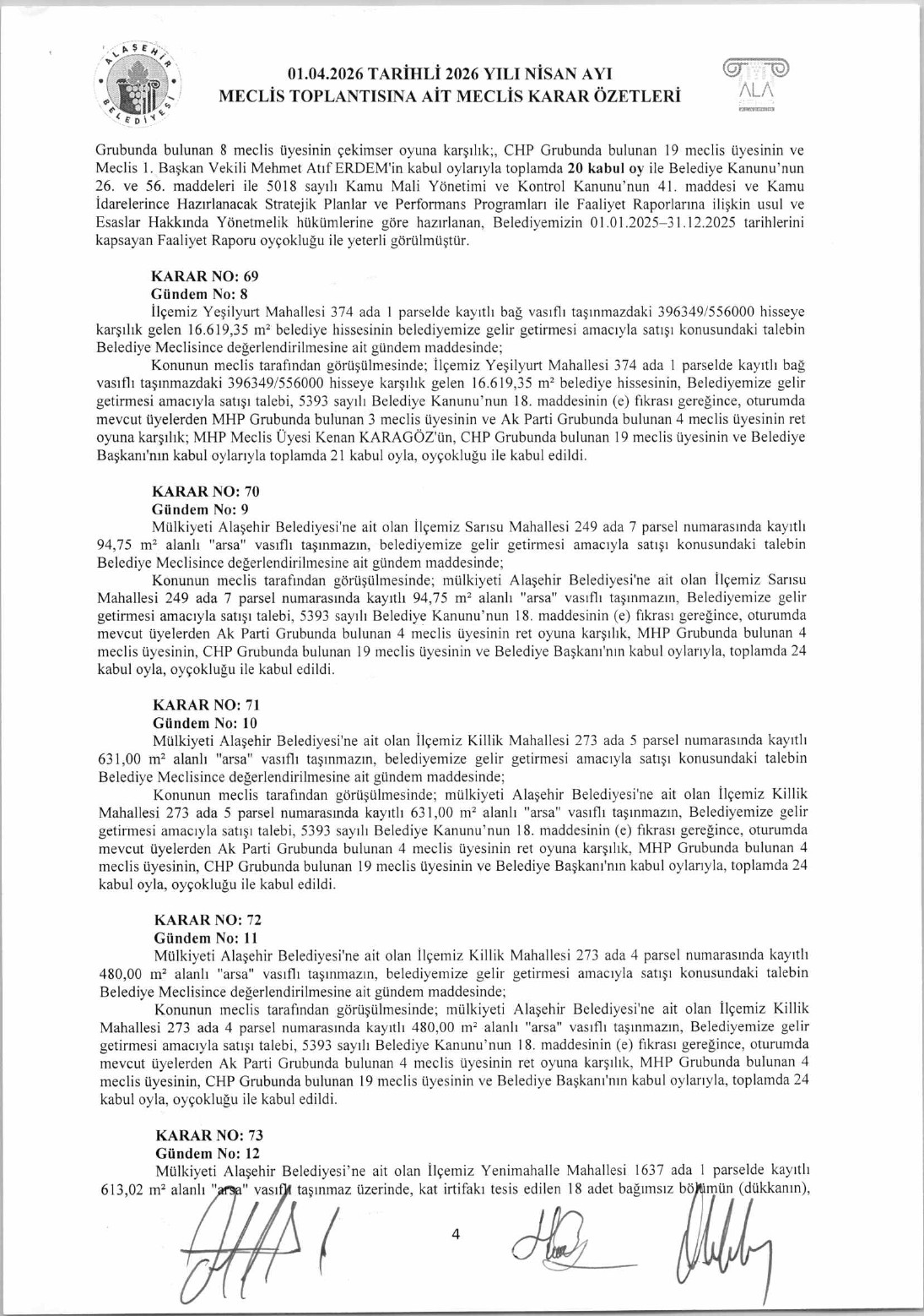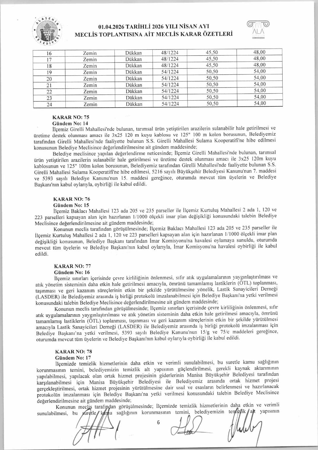 2026 YILI NİSAN AYI MECLİS KARAR ÖZETİ