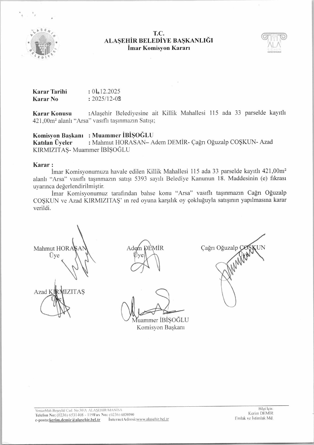 2025 YILI ARALIK AYI KOMİSYON KARARLARI