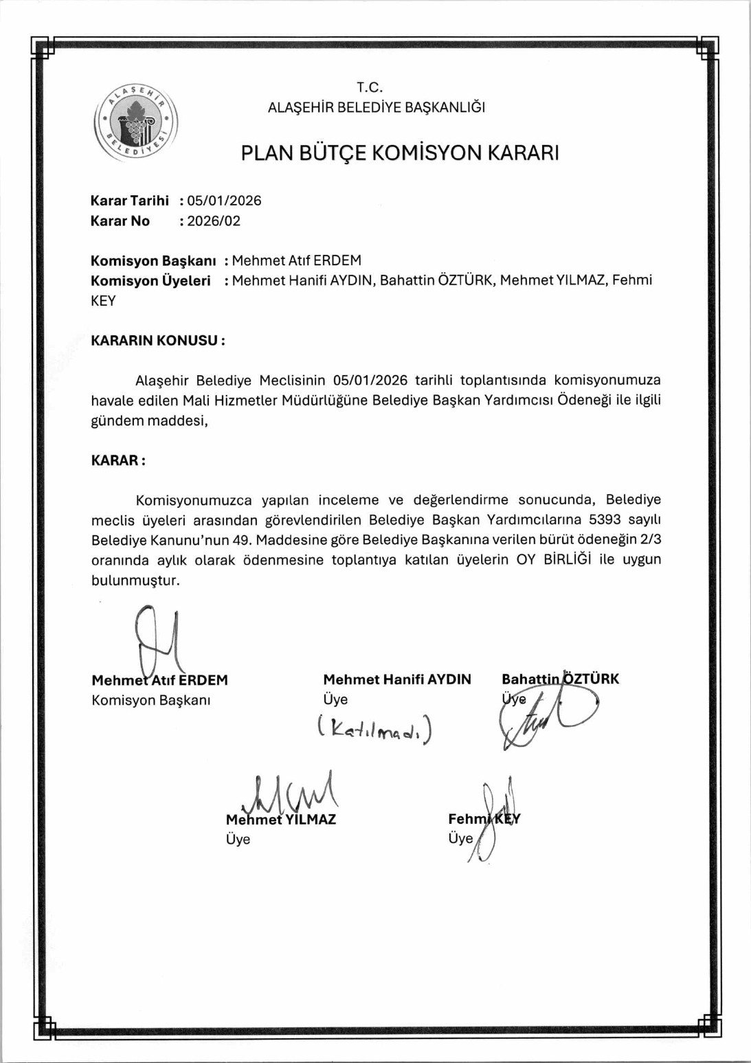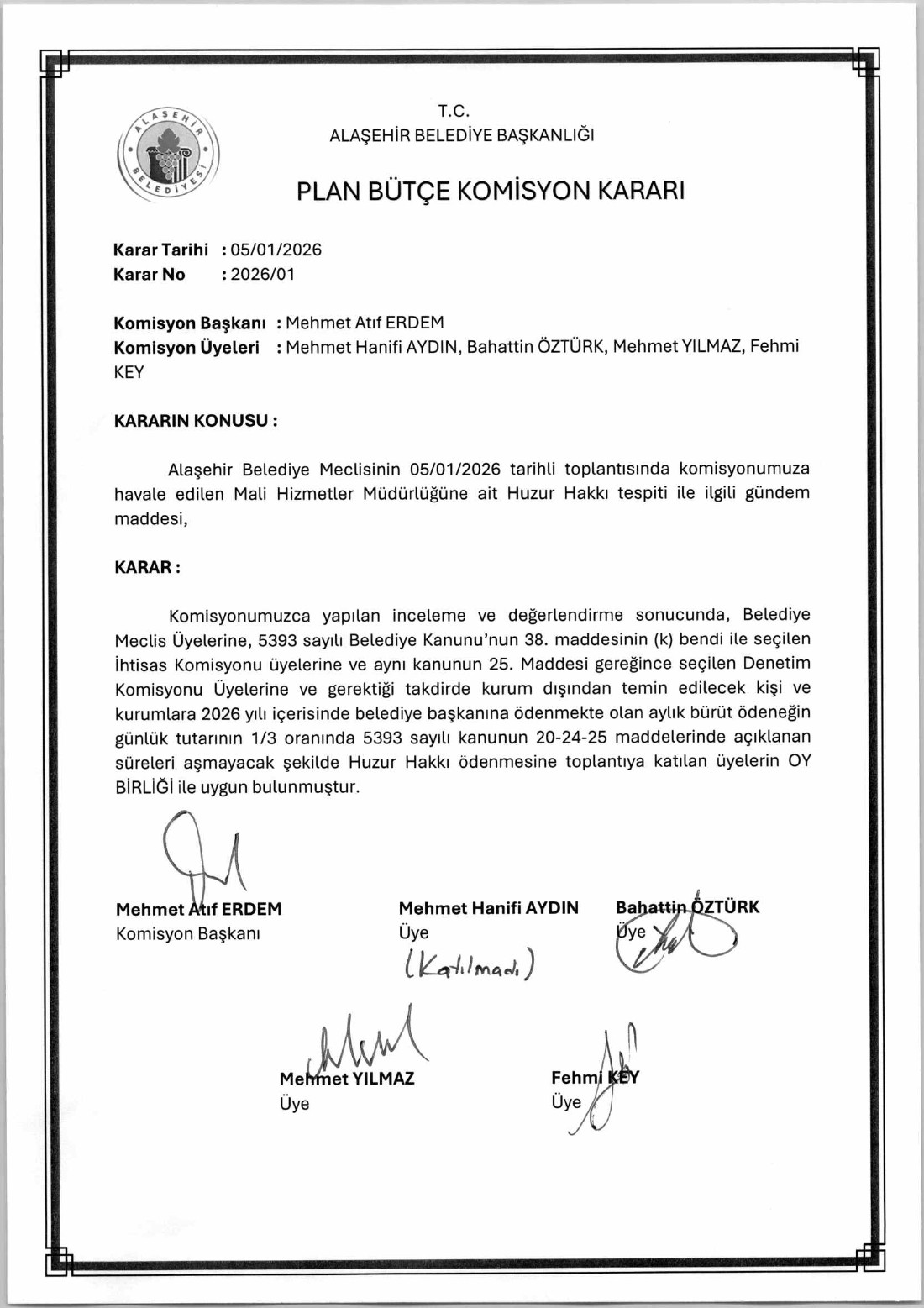 2026 YILI OCAK AYI MECLİS KARAR ÖZETİ