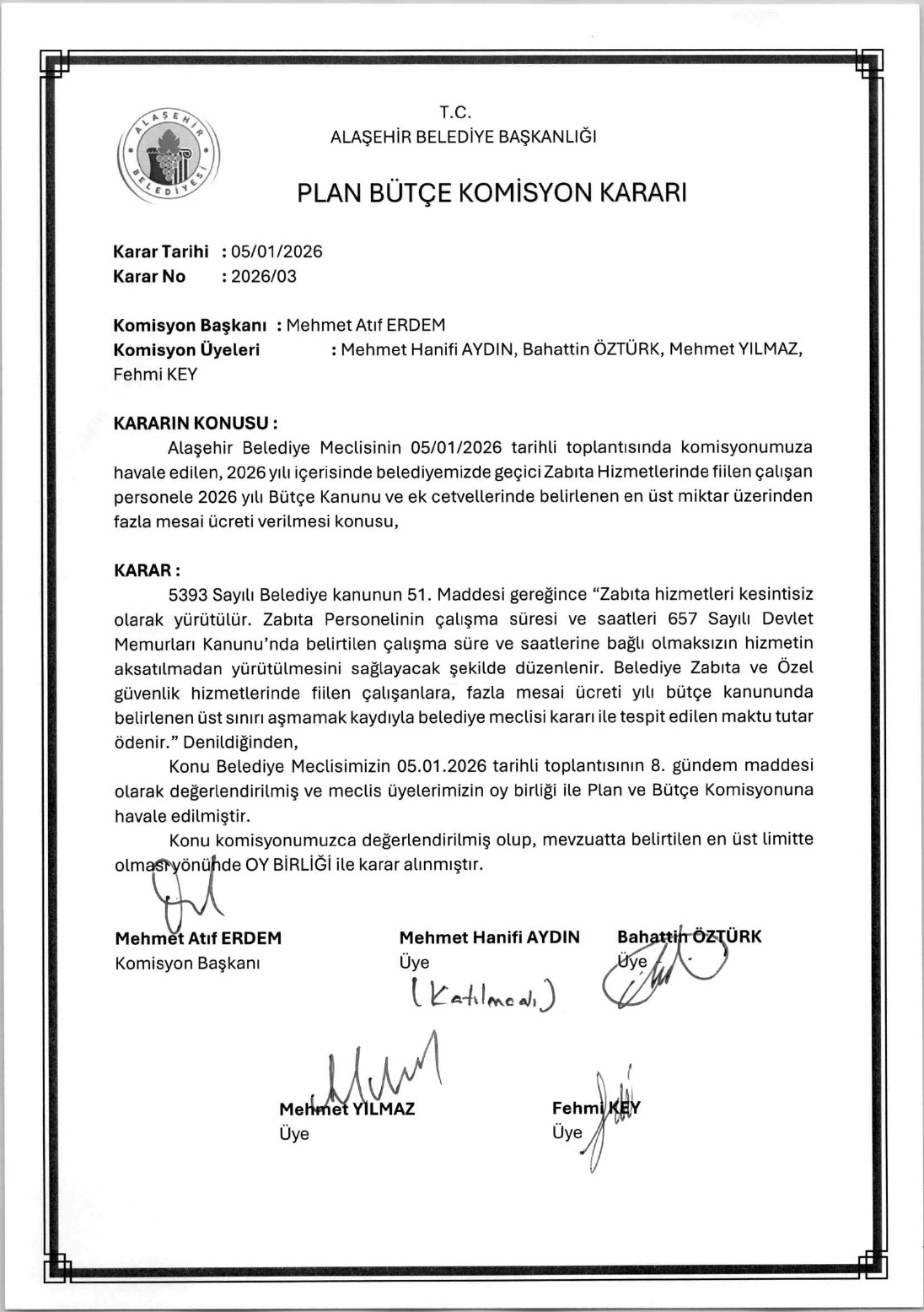 2025 YILI ARALIK AYI 3. OLAĞANÜSTÜ KOMİSYON KARARLARI