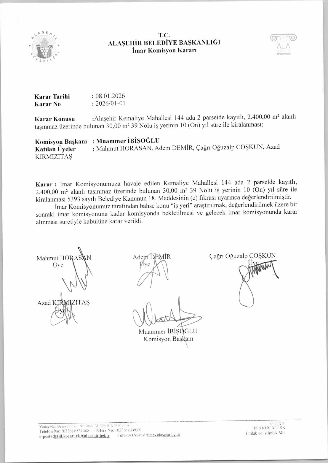 2026 YILI OCAK AYI KOMİSYON KARARLARI
