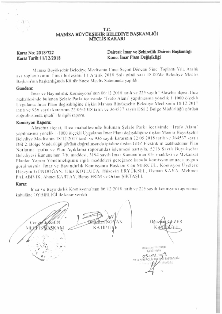 Alaşehir İlçesi Ilıca Mahallesi Şelale Parkı İçerisinde "trafo Alanı" İmar Plan Değişikliği