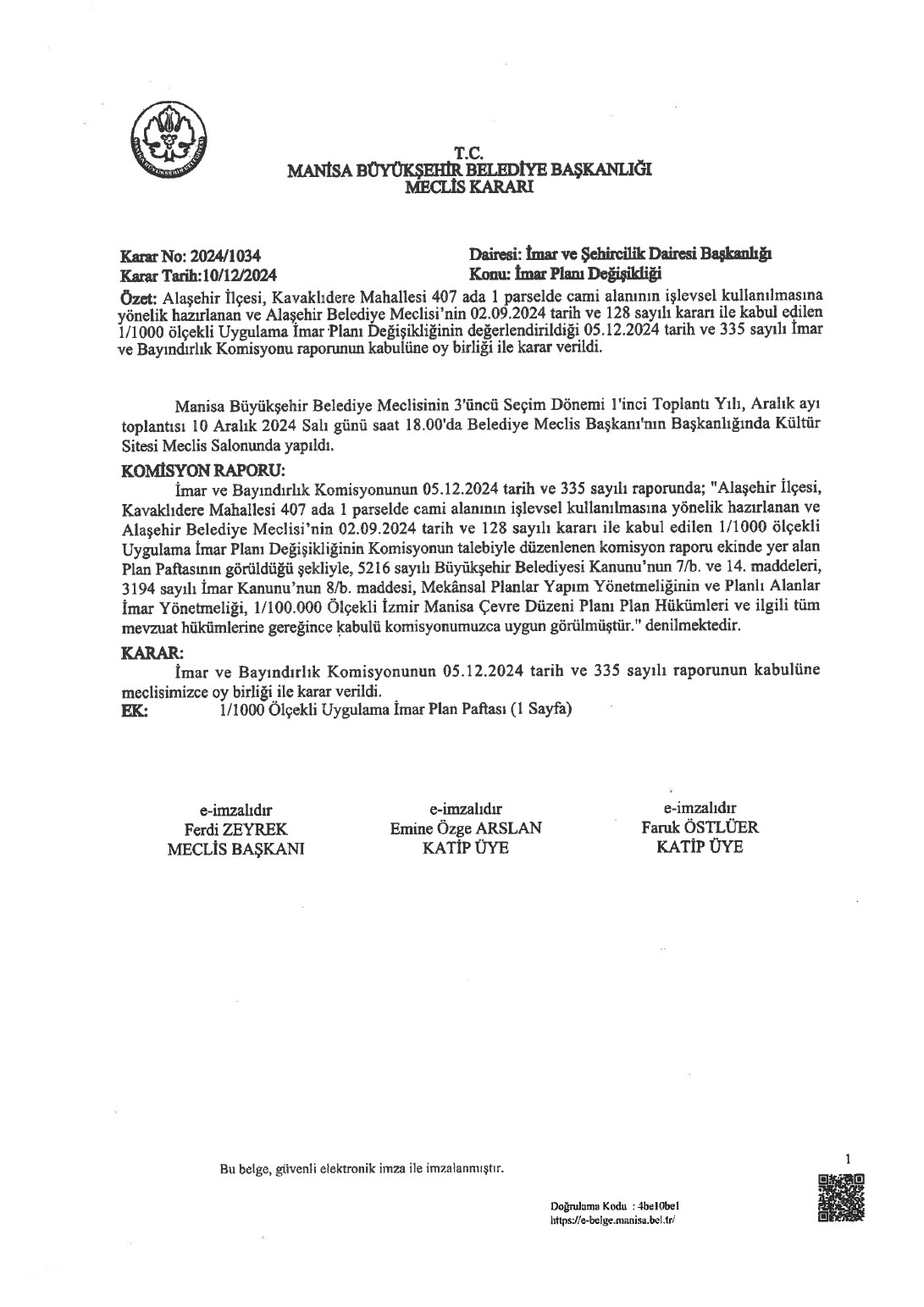 Alaşehir (Merkez) 1/1000 Ölçekli İlave- Revizyon İmar Planı, Plan Değişiklikleri Hk.