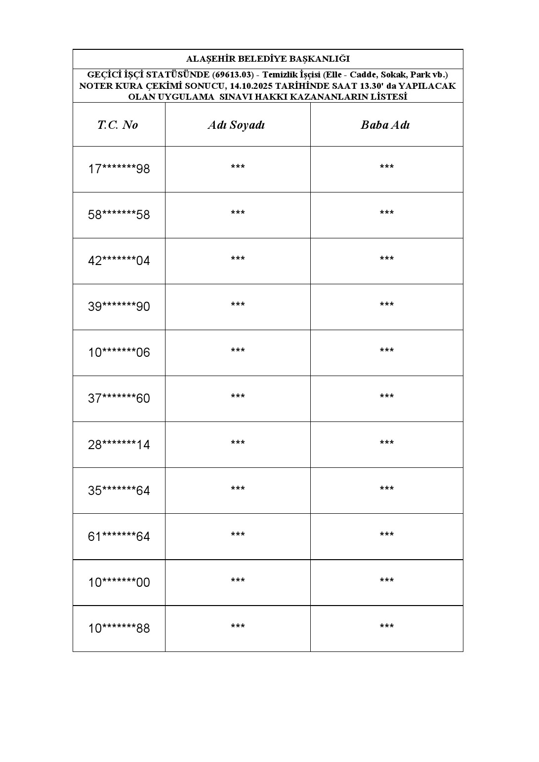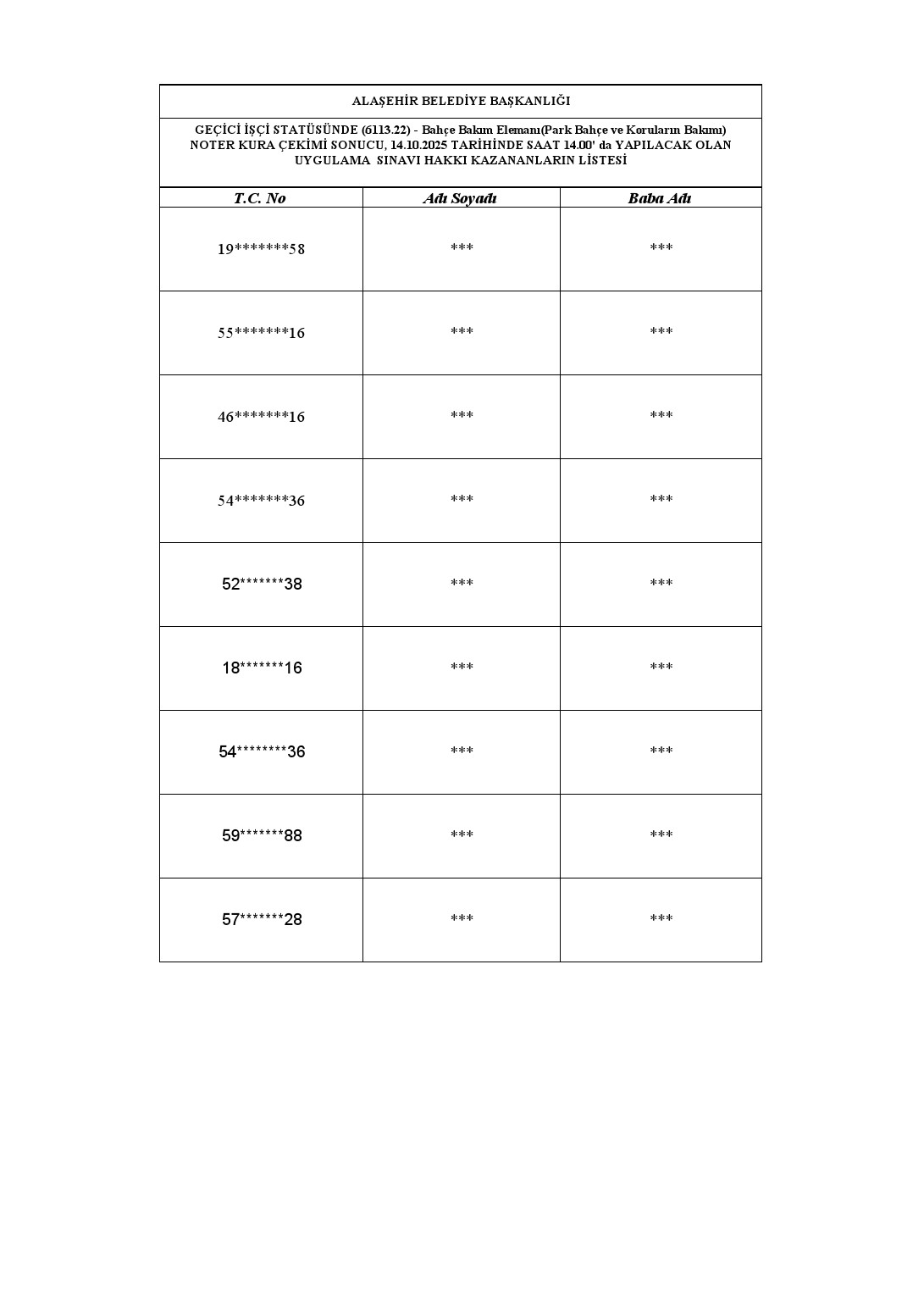 GEÇİCİ İŞÇİ ALIMI NOTER KURA ÇEKİMİ LİSTESİ VE UYGULAMA SINAV TARİHİ