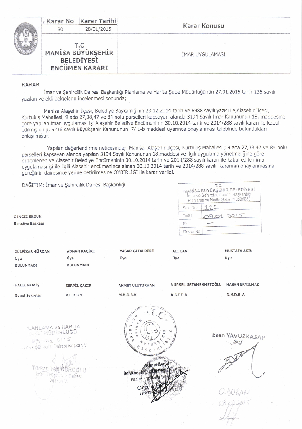 Alaşehir (Merkez) 1/1000 Ölçekli İlave- Revizyon İmar Planı, Plan Değişiklikleri Hk.