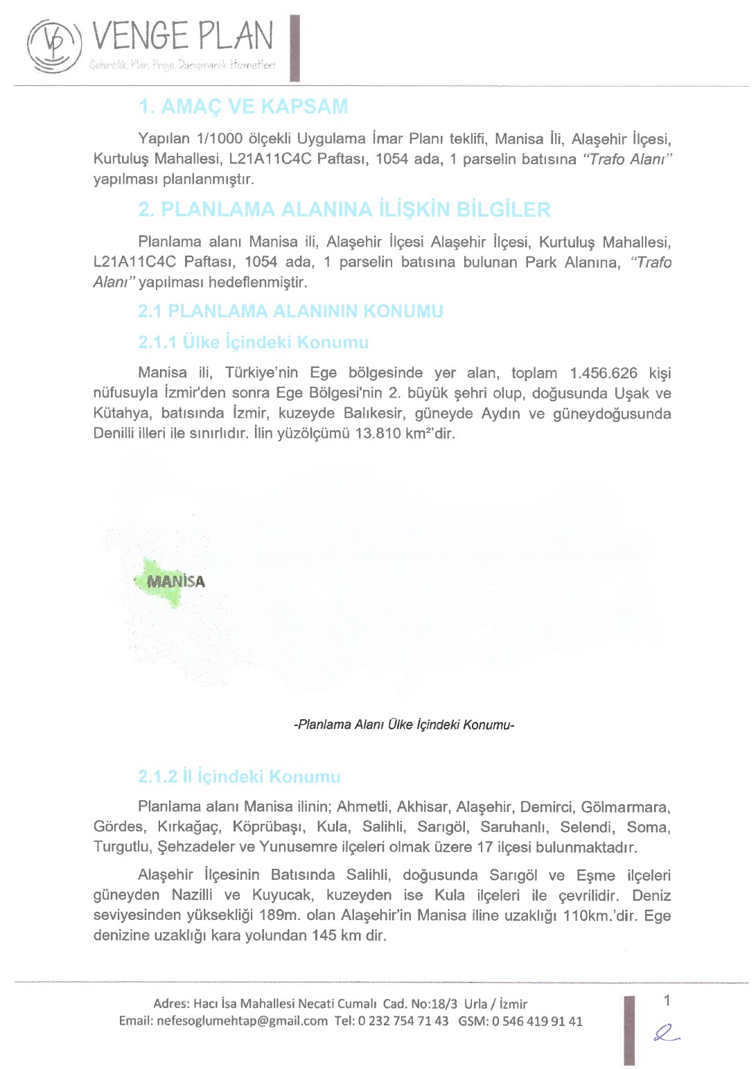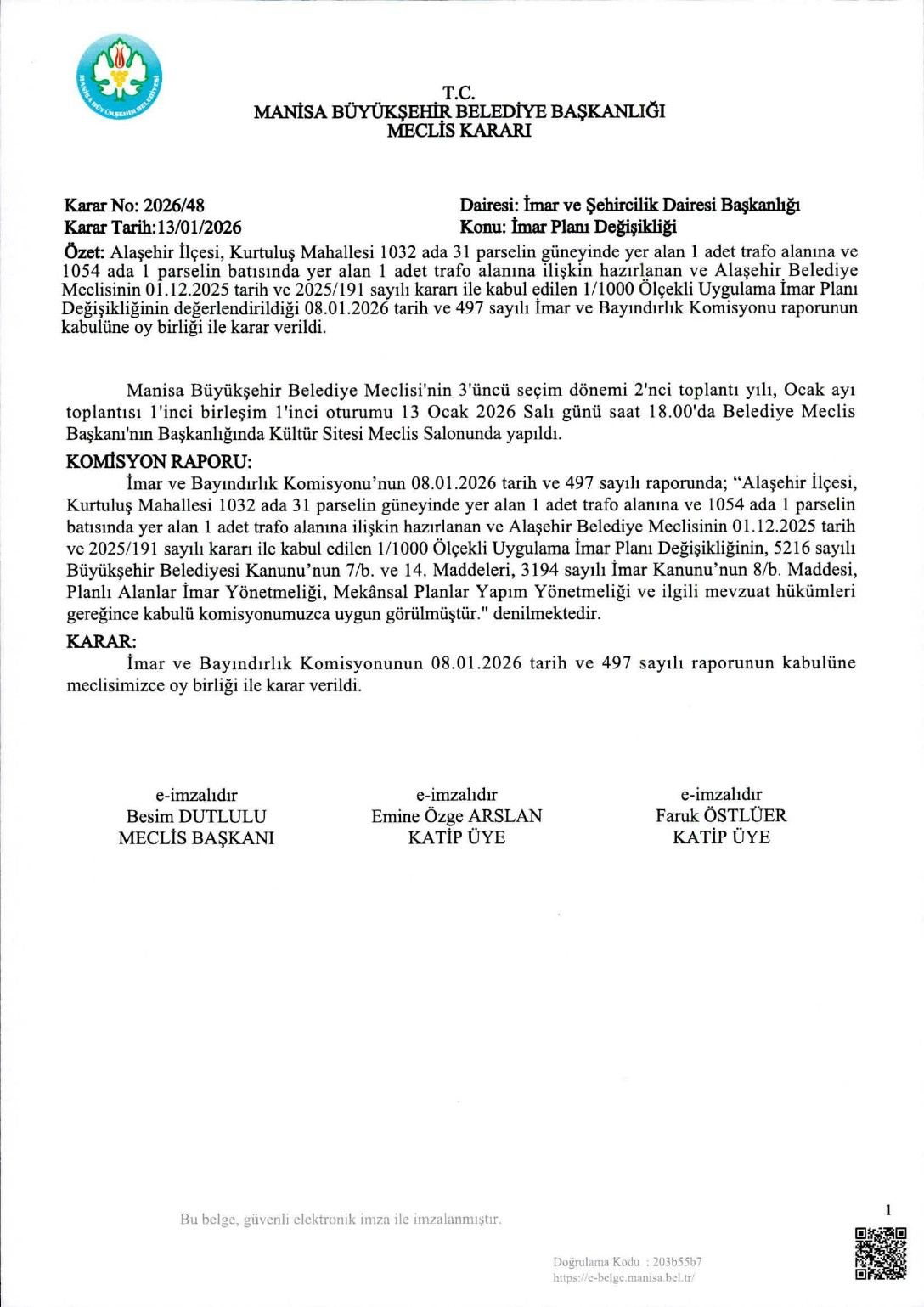 Alaşehir İlçesi, Hacıbey Mahallesi 797 Ada 16 Parselin Güneyinde Kalan Trafo Alanına İlişkin Uipd