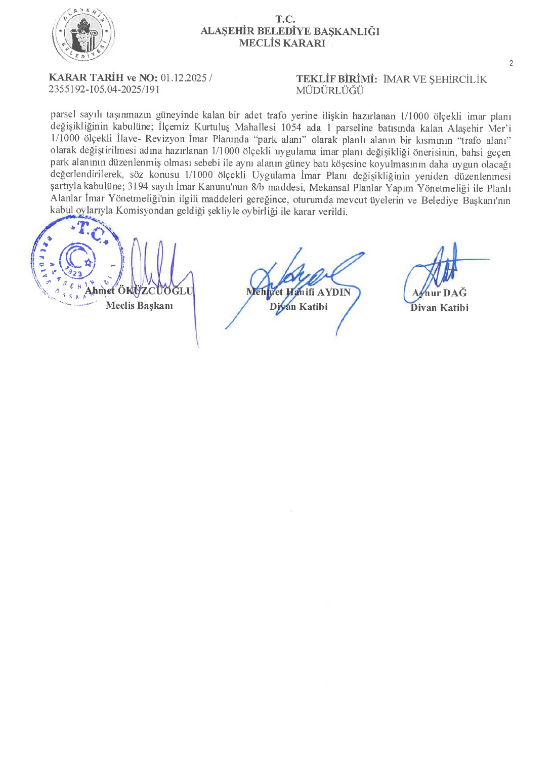 Alaşehir(merkez) 1/1000 Ölçekli İlave- revizyon Uygulama İmar Planı, Plan Değişiklikleri Hk