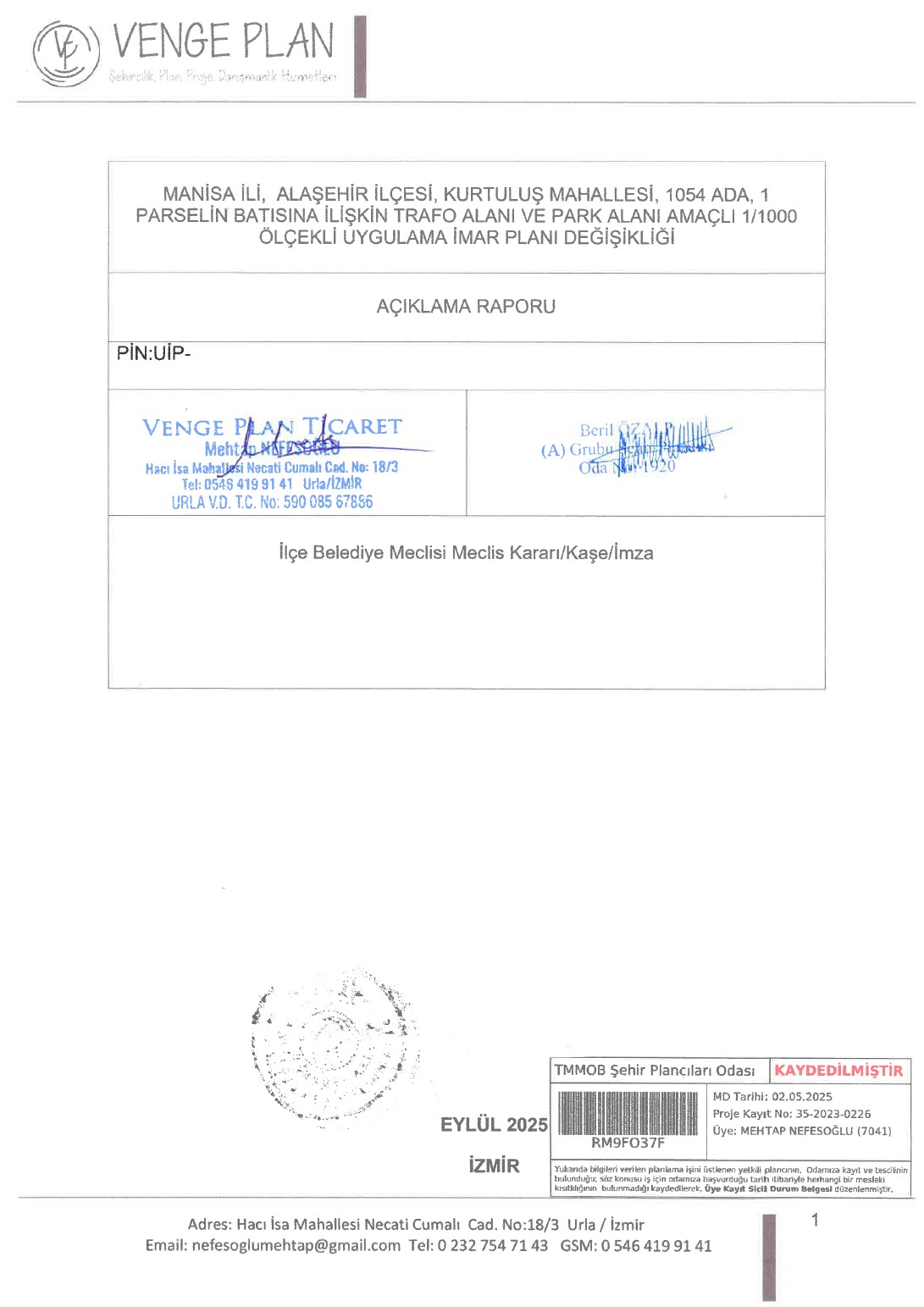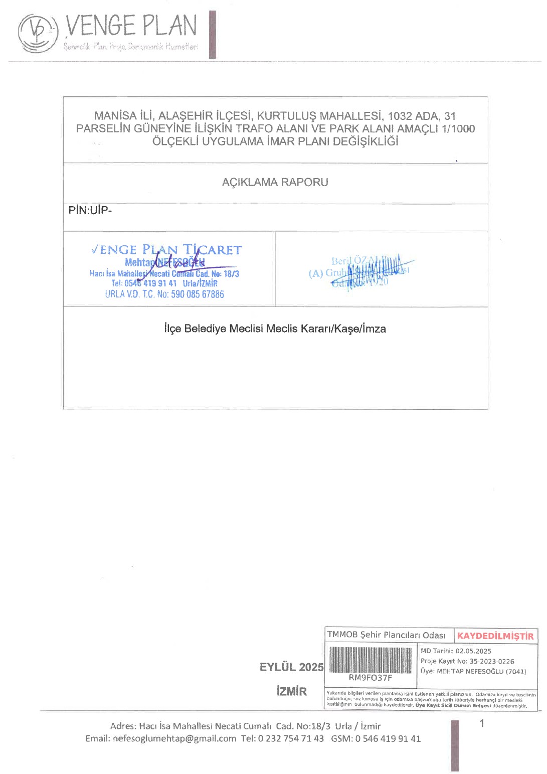Kurtuluş Mah. 1032 Ada 31 Parselin G. ve 1054 Ada 1 Parseli B. Kalan Trafo Alanlarına İlişkin Uipd