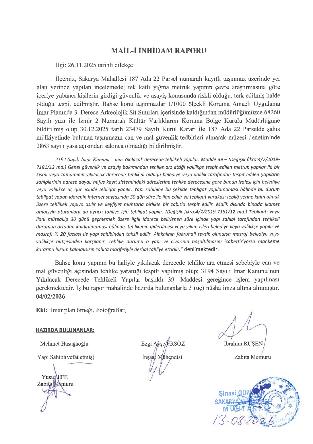 Sakarya Mah. 187 Ada 22 Parsele Ait Metruk Yapının Web Sitesi İlanı Hk.